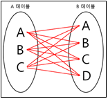 -기준 테이블과 join 테이블의 중복된 값을 보여준다.